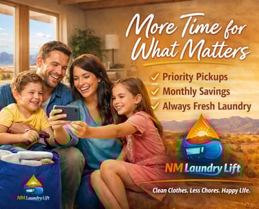 NM Laundry Lift provides professional laundry pickup and delivery in Albuquerque, Rio Rancho, Corrales, Bernalillo, and Tijeras.